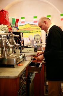 They presented it to our table in a beautiful setting on a bread board. It is almost too pretty to eat…but we managed. (Have you noticed that everything here revolves around food?) We had the bottle of local Chianti poured directly from the cask. Marone! It was so good. Not at all like the Chianti in the States…smooth, light and fruity. We bought a bottle to take home.